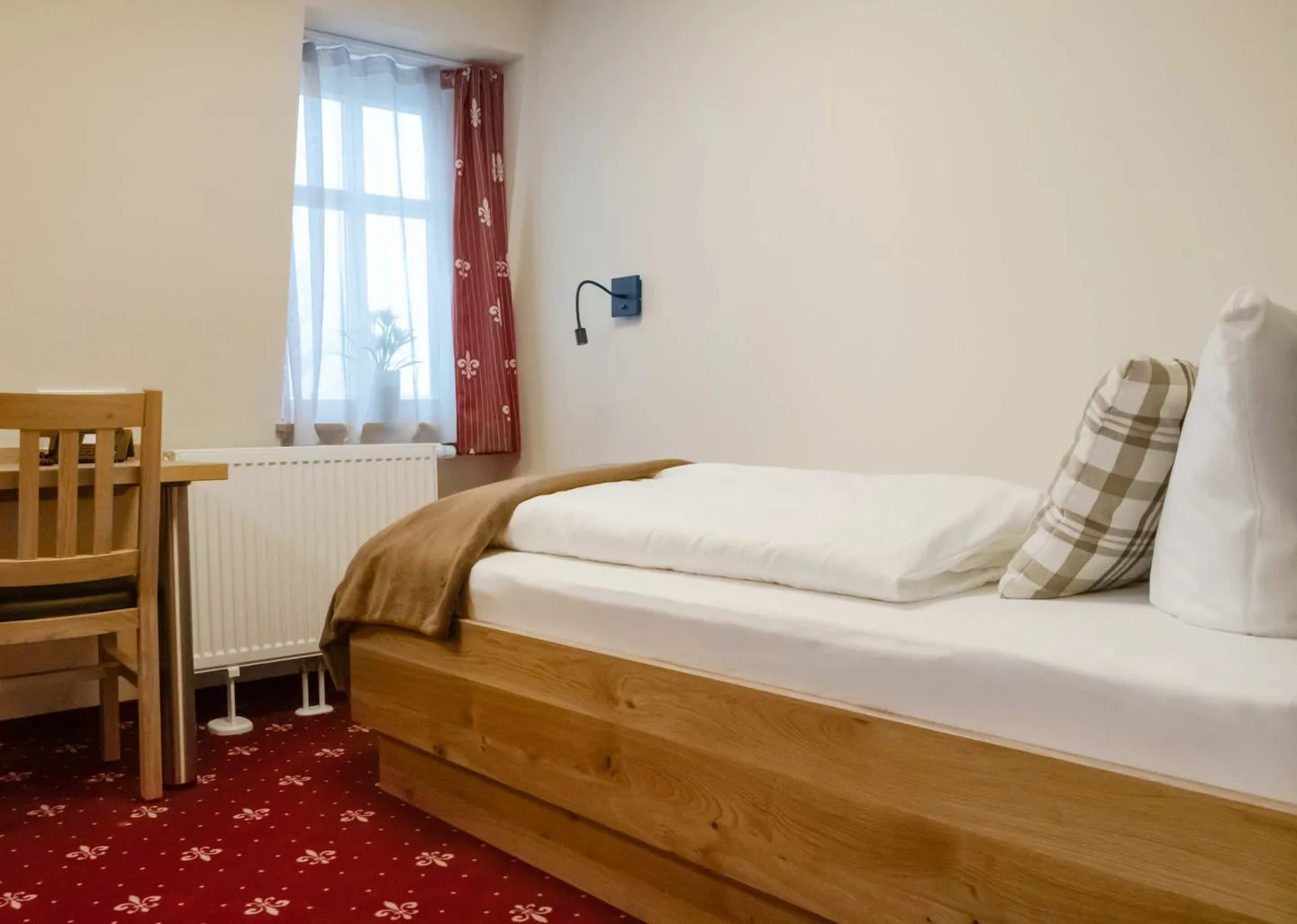 Das Einzelzimmer ist als Nichtraucherzimmer ausgewiesen und bietet, durch allergikerfreundliche Ausstattung und die Möglichkeit eines kontaktlosen Check-ins und Check-outs, besonderen Komfort und Sicherheit. Für Familien mit kleinen Kindern sind Babys willkommen. Das Interieur ist modern und funktional gestaltet. Ein komfortables Einzelbett mit allergikerfreundlicher Bettwäsche steht Ihnen ebenso zur Verfügung wie ein Schreibtisch – ideal zum Arbeiten oder zur Reiseplanung. Der Boden im Schlafbereich ist mit Teppich ausgelegt, was für ein angenehmes Raumklima sorgt. Die Garderobe bietet ausreichend Platz für Ihre Kleidung und persönlichen Gegenstände.