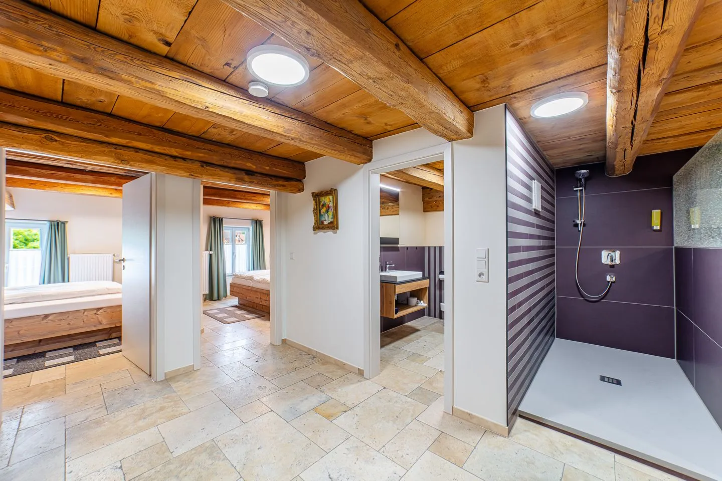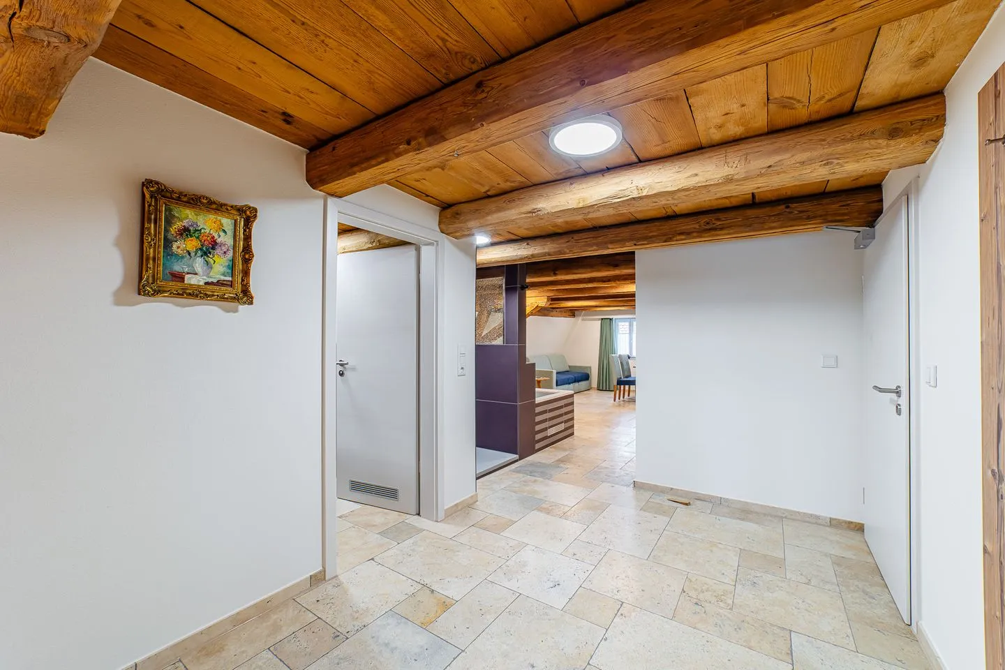 Die Wellness Apartment Suite „Paradies Suite“ in Spalt verbindet modernen Komfort mit historischem Ambiente in einem sorgfältig restaurierten Gebäude aus dem Jahr 1730. Die Suite liegt im 2. Stock eines Hauses mit insgesamt drei Etagen und bietet auf 55 m² Wohnfläche eine exklusive Wohlfühloase für Gäste, die Wert auf Qualität und Entspannung legen. Dank der umfassenden Renovierung im Jahr 2024 ist die Ausstattung zeitgemäß und komfortabel, wobei auf Barrierearmut und ein allergikerfreundliches Umfeld Rücksicht genommen wurde.